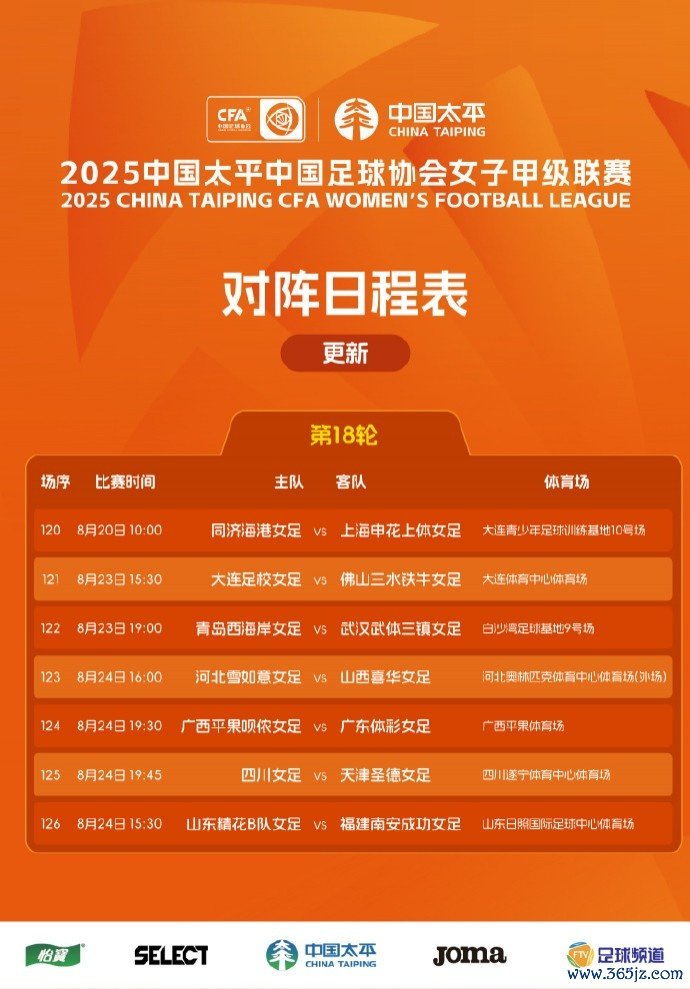 > 2025女甲联赛 第18轮 对阵日程表转化