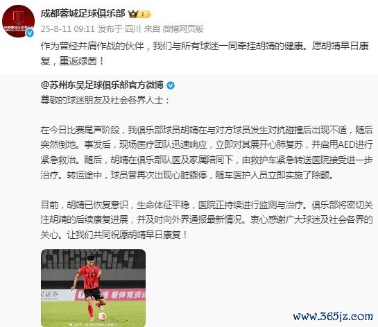 8月11日讯 在苏州东吴俱乐部公布胡靖的体魄现象后,老东家成齐蓉城俱乐部通过官博奉上了道喜。