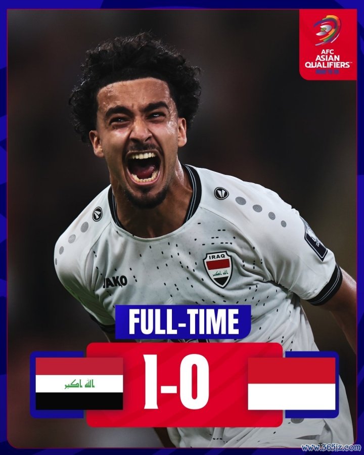 世初赛伊拉克2-0打败印尼,印尼两连败出局,伊拉克下轮对阵沙特。