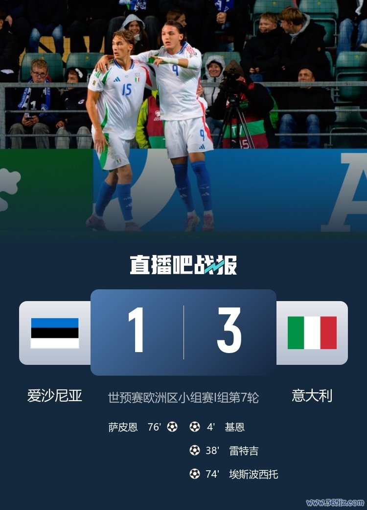 四连胜 !意大利3-1爱沙尼亚 小基恩破门后伤退多纳鲁马耸峙