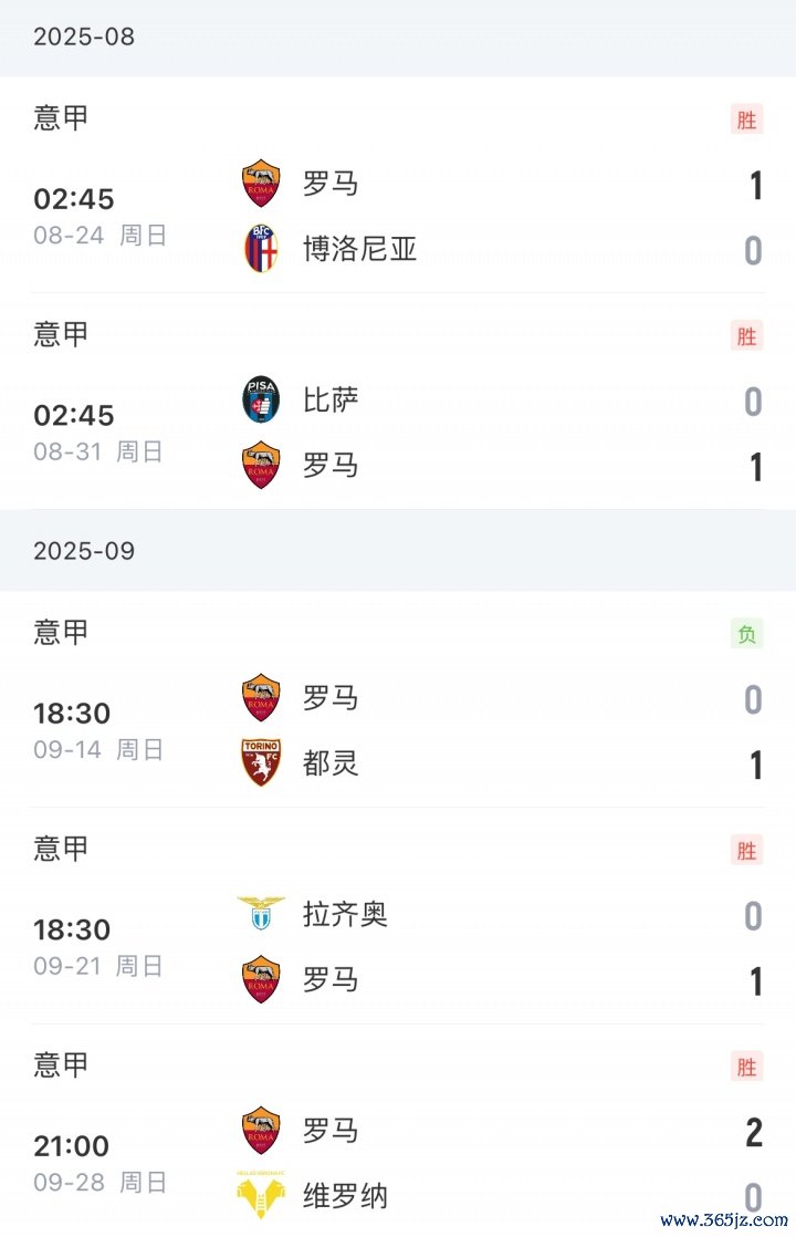 而2个负场中,罗马区别齐所以0-1的比分败给齐灵和国米。