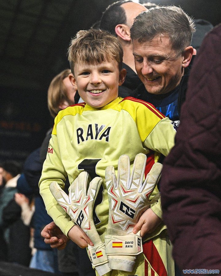 阿森纳门将拉亚赛后将我方的球衣和手套送给了一位小球迷,展现了我方的亲和力。