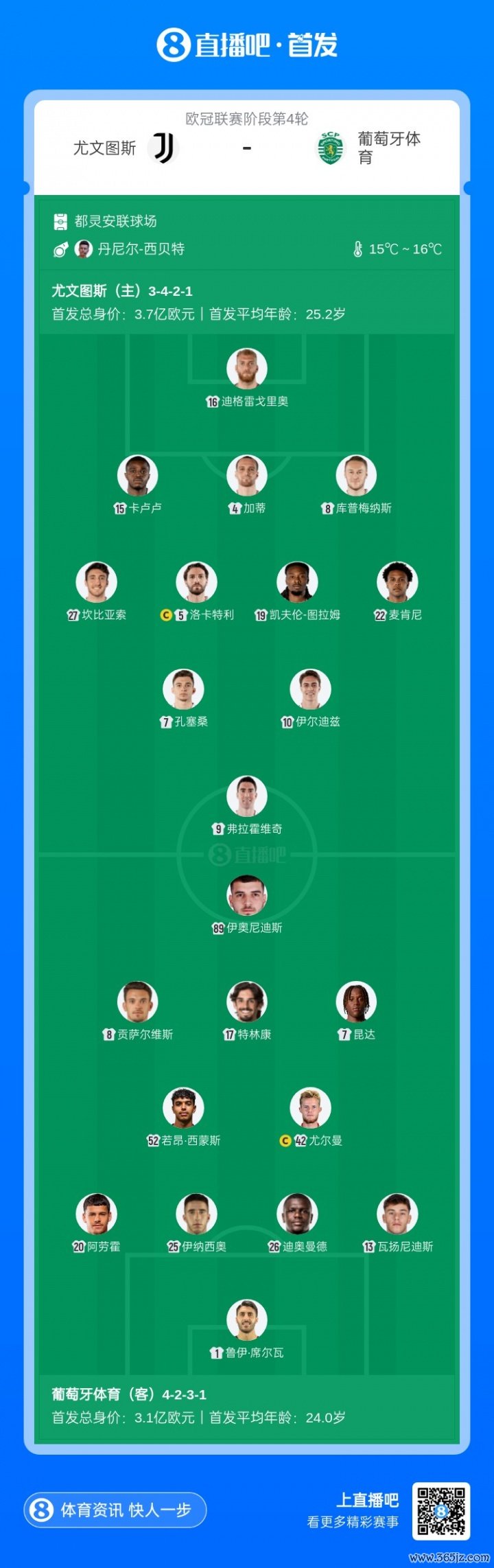 11月5日讯 北京技能11月5日凌晨4:00,欧冠第4轮,尤文图斯vs葡萄牙体育。赛前两边公布了首发名单。
