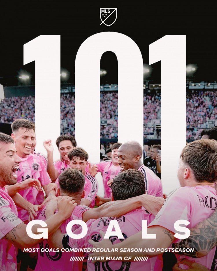 遑急机敏!迈阿密海外单赛季好意思职联打进101球,创造赛事历史记录