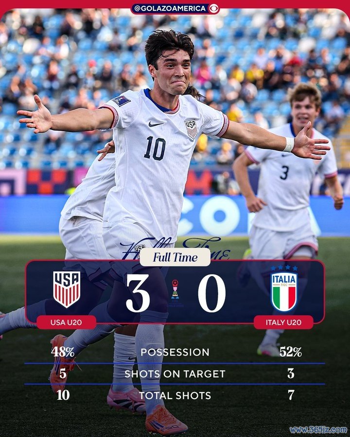 世青赛(U20寰宇杯)1/8决赛,好意思国3-0打败意大利,晋级8强。