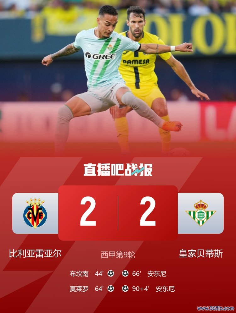 贝蒂斯一度0-2逾期,但你连进两球扳平比分