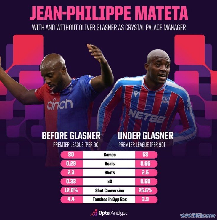 据统计,自2024年2月格拉斯纳握教水晶宫以来,马特塔在英超打进32球,此数据在同时仅次于哈兰德43球、萨拉赫34球、伊萨克34球。