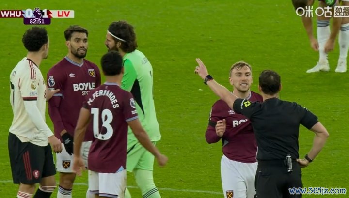 11月30日讯 英超第13轮,西汉姆联vs利物浦,帕奎塔起火判罚连吃2黄被罚下。