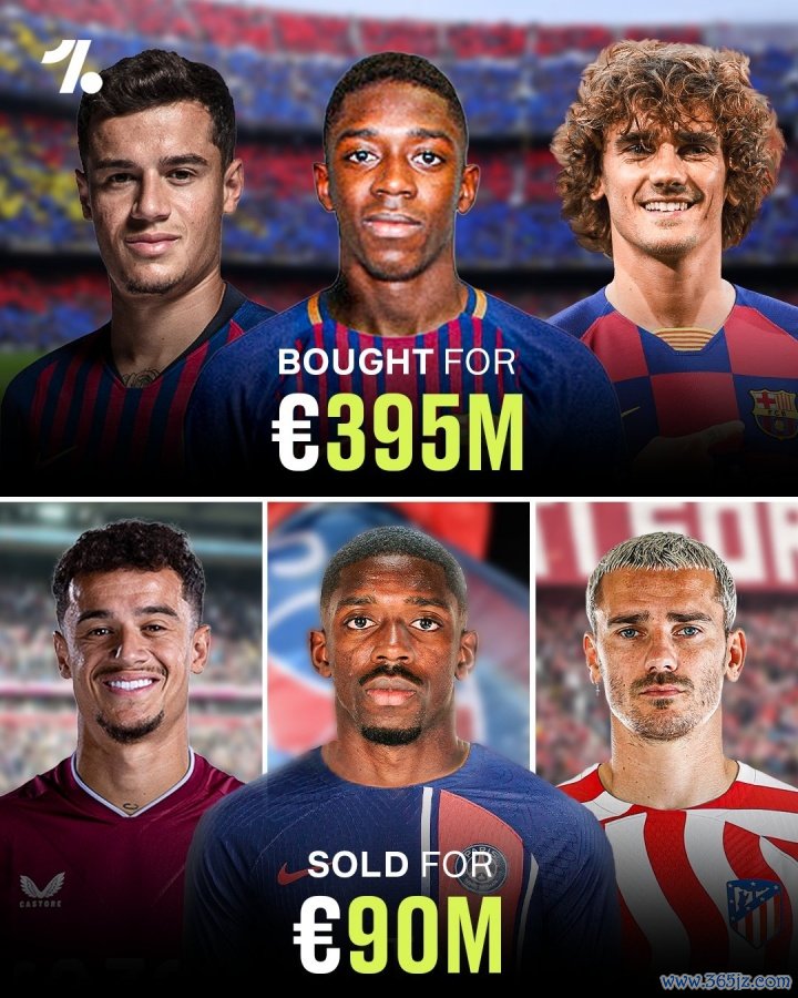 巴萨如今堕入财务状态欠安的困境,与以前在转会阛阓上的操作也有很大联系。登贝莱、库蒂尼奥和格列兹曼3东谈主的转会差价,就让巴萨巨亏3亿欧。