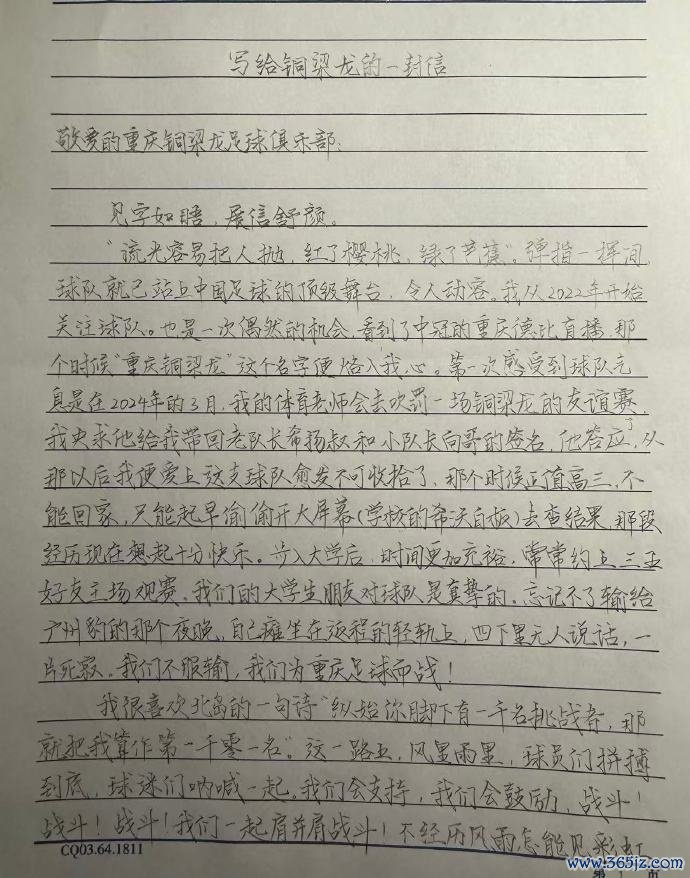 11月11日讯 重庆铜梁龙俱乐部官方社媒晒出了球迷的来信,并向这些给球队来信的球迷抒发了感谢。