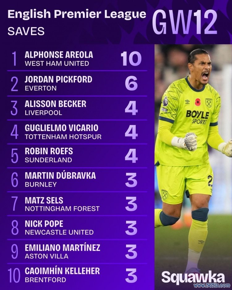 11月25日讯 英超第12轮联赛还是完成,本轮多位门将孝顺精彩发达。皮克福德单场6次扑救匡助埃弗顿在客场力克曼联。