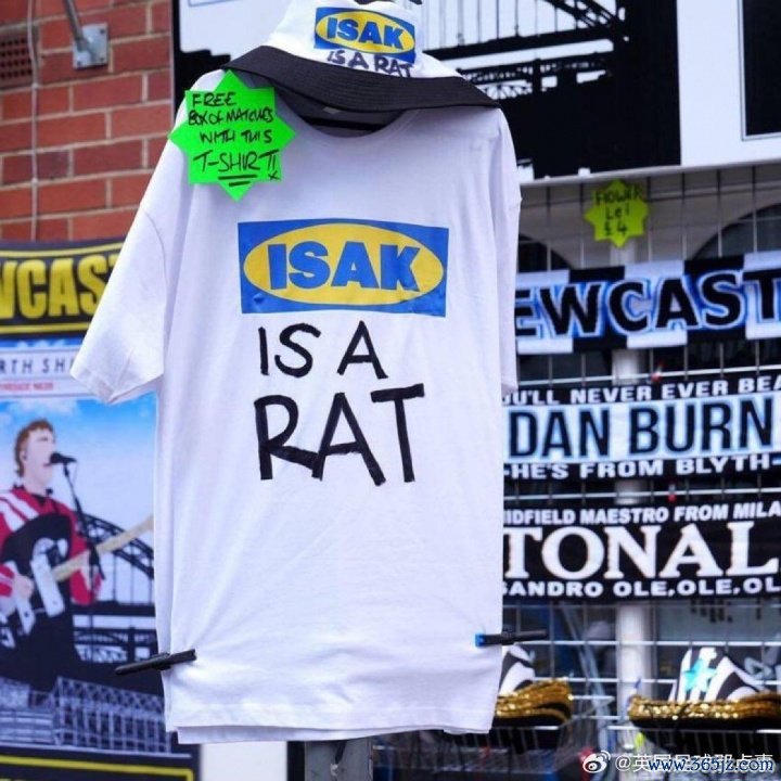 纽卡vs利物浦赛前,球场外有东说念主出售写着"伊萨克是老鼠"的球衣👀