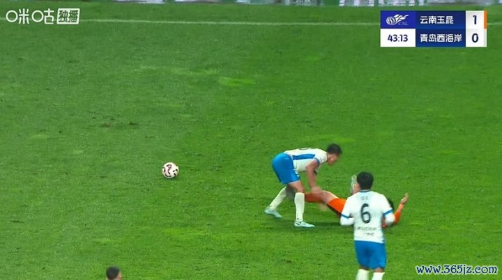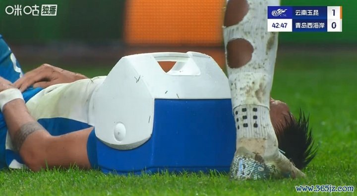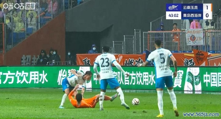 这下太痛了!第43分钟,宋浩宇宝贵时被倒地的罗竞踢到裆部