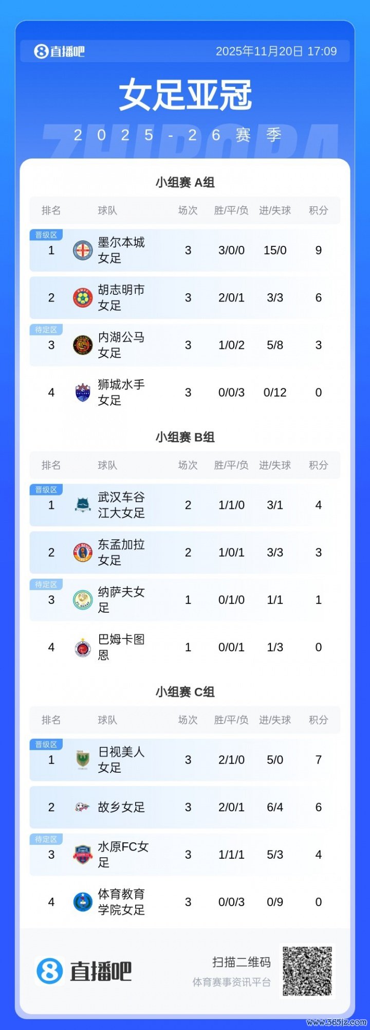 由于A组和C组的小组赛照旧箝制,这两个小组的小组第三,一个为3分,一个为4分,因此武汉车谷江大至少保证一个小组第三的出线限额。