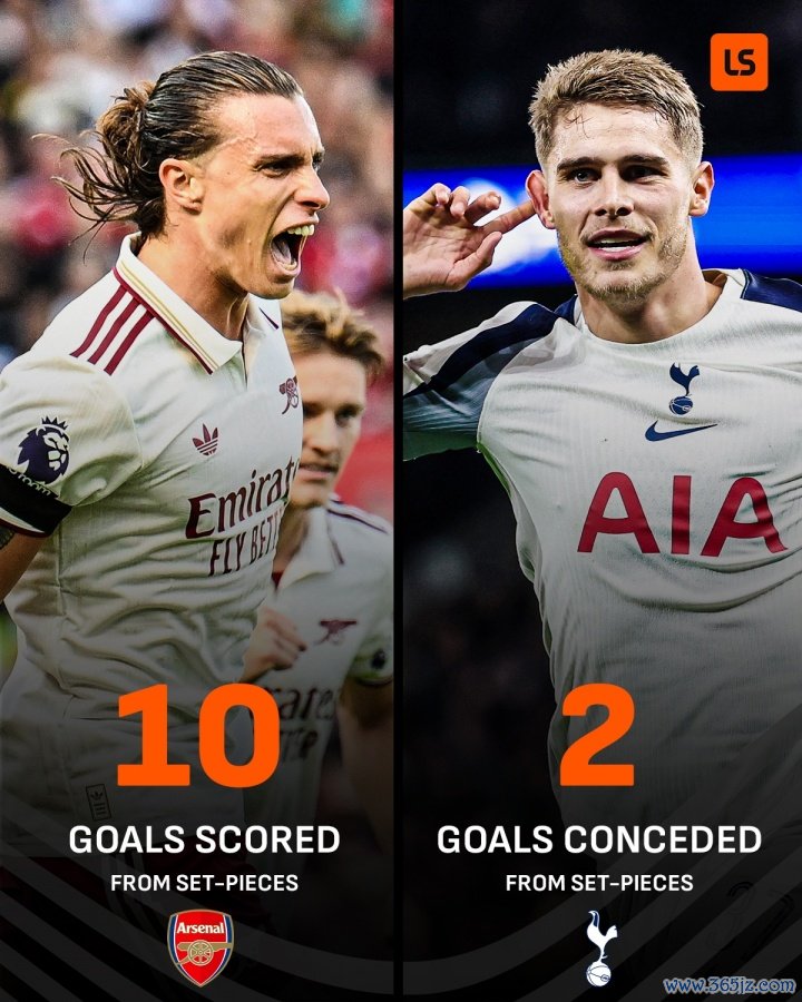 矛与盾!阿森纳定位球进10球英超第一,热刺定位球丢2球英超最少