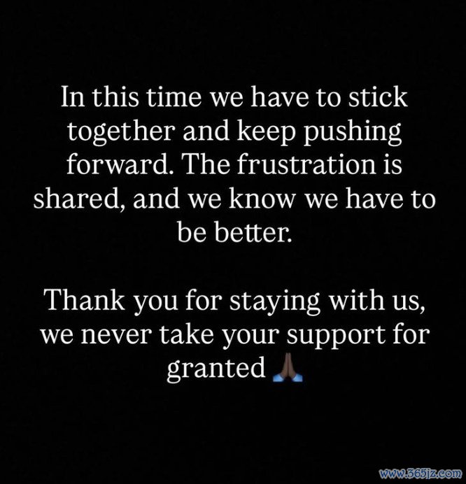 中场帕佩·萨尔在赛后通过社媒发文向球迷们致歉:“在这段时分,咱们必须和谐一致,不竭前进。咱们相似感到黯然,而况深知咱们必须作念得更好。”