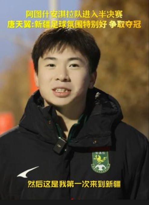 唐天翼说说念:“公共好,我叫唐天翼,我来自广东,这是我第一次来到新疆,我代表阿图什安淇拉俱乐部干预这一次喀什杯,我但愿咱们球队能拿到冠军。来到新疆,我嗅觉新疆的足球氛围相配好,我挺心爱这里的氛围的,我也但愿即是新疆足球和中国足球齐越来越好。”