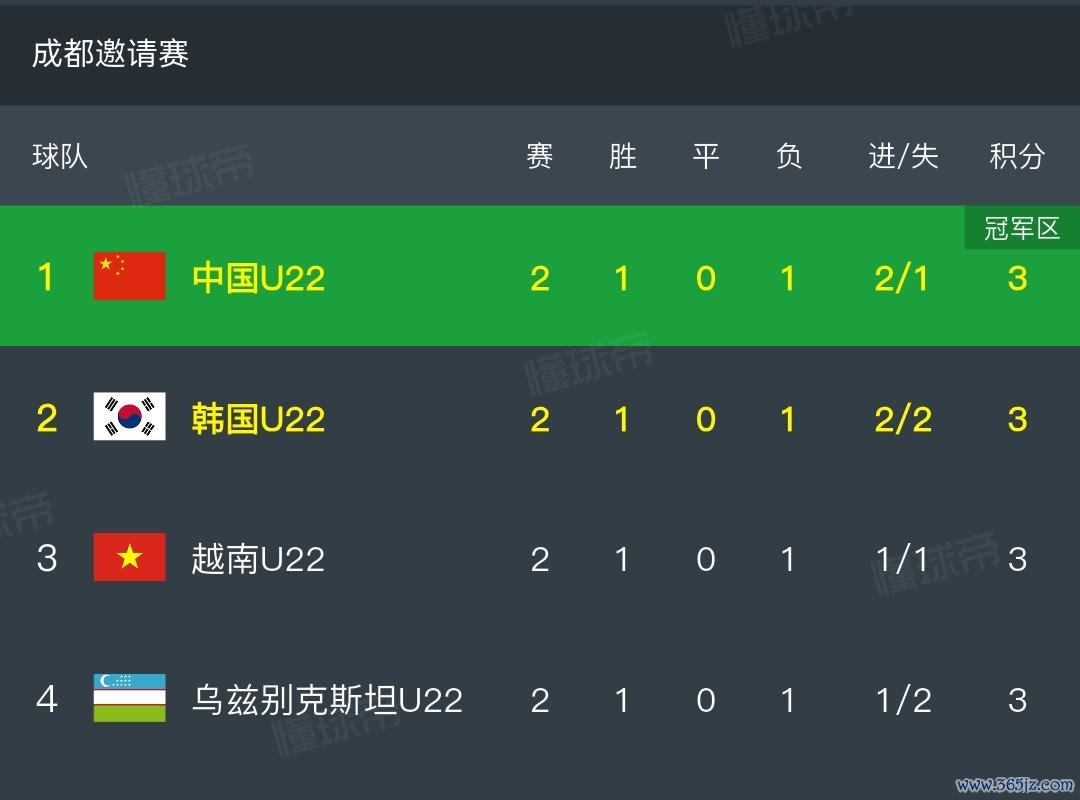 北京技术11月15日,在熊猫杯成齐邀请赛中,U22国足全场占优的情况下2-0打败韩国U22,这意味着在及时积分榜上,一谈四支参赛球队齐积得3分,而中国队凭借净胜球的上风暂列积分榜首位。